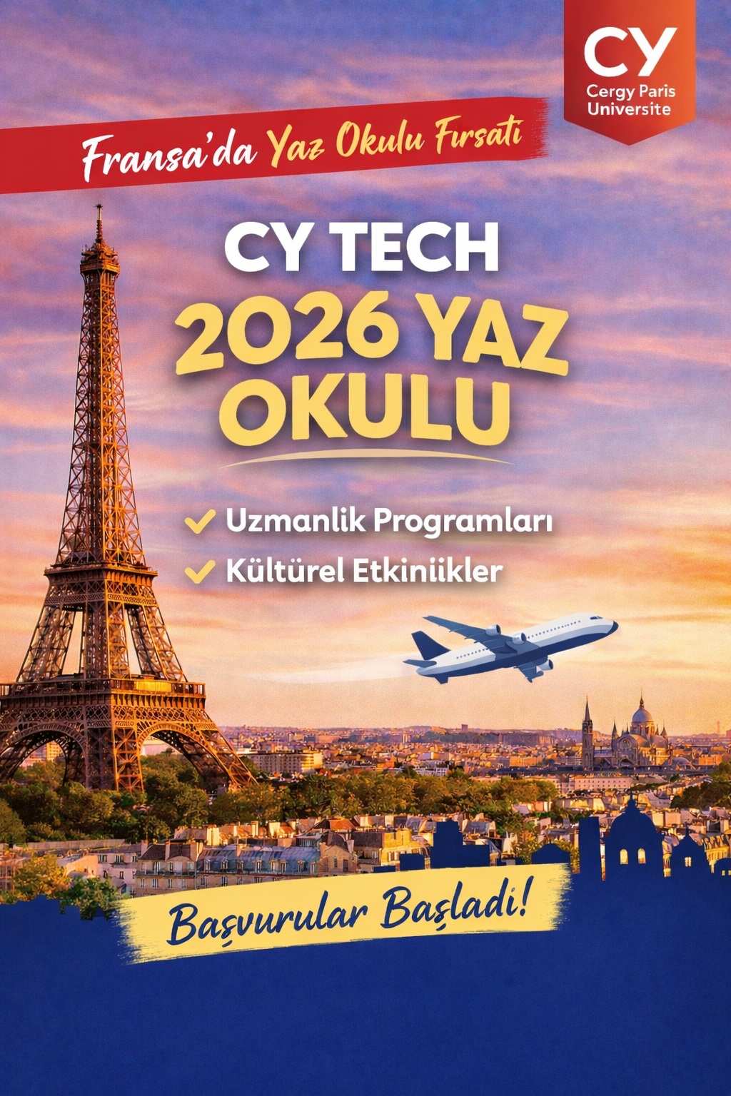 Üniversitemiz Uluslararası İlişkiler Ofisi, Erasmus Koordinatörlüğü kapsamında partner üniversitelerimizden Fransa'da bulunan CY Tech (CY Cergy Paris Université) tarafından düzenlenen 2026 Yaz Okulu Programı için başvurular başlamıştır.